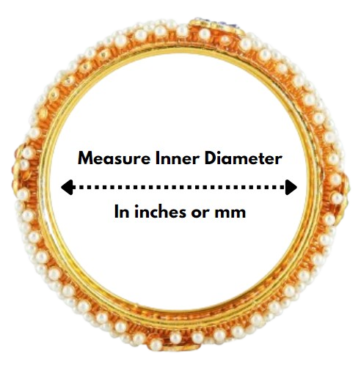Use any of your current bangles that fits comfortably, Measure the inner diameter of the Bangle and compare with the below measurement chart,